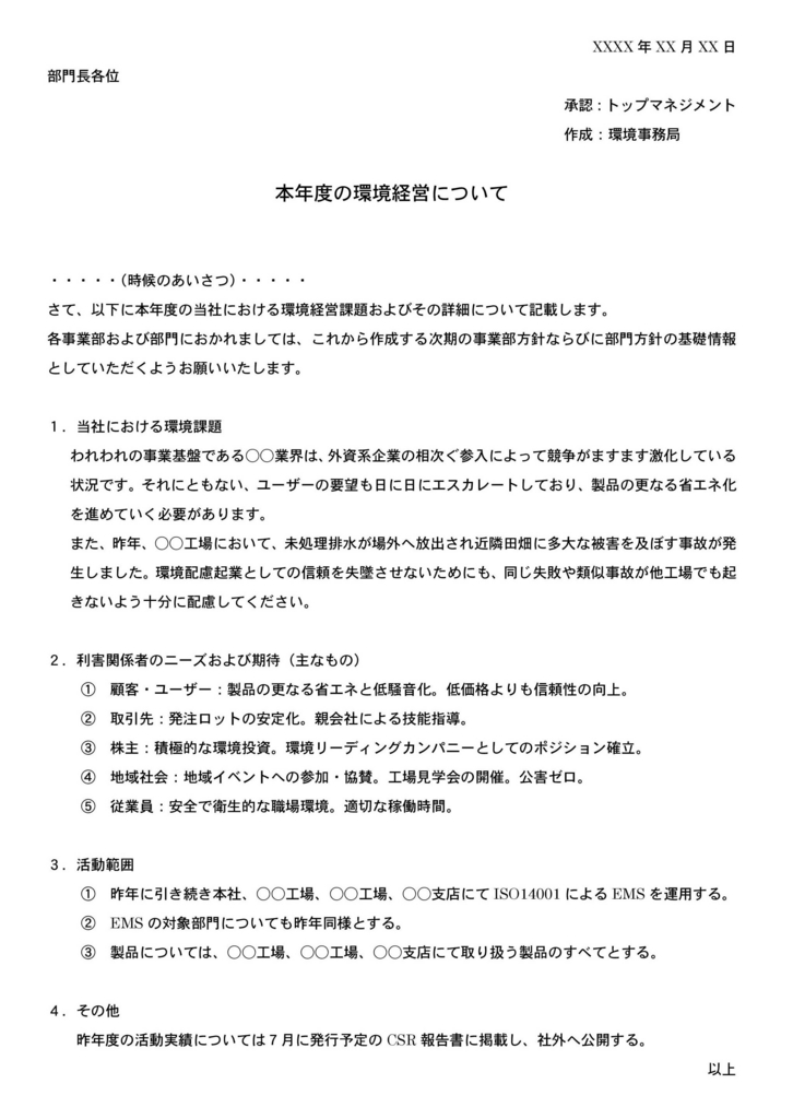 ですから、事務局やトップマネジメントの中で共通認識をもっておく程度でいいと思います。